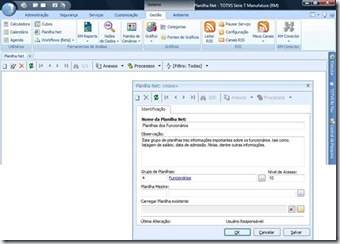 Com o Cadastro devidamente preenchido, podemos clicar em [Salvar] e posteriormente em [Ok]. A planilha será salva no Banco de Dados.